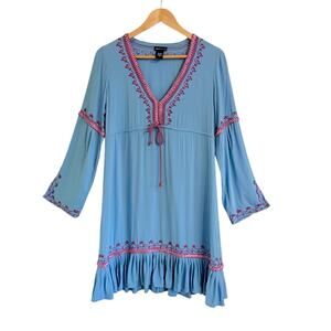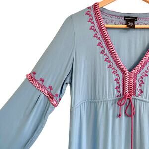 Moda Int’l Embroidered Bohemian Dress Sz M Blue Pink Festival