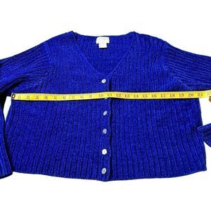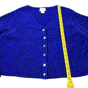 Moda Int'l Women's Blue Button Front Cropped Ribbed Cardigan Sweater Large