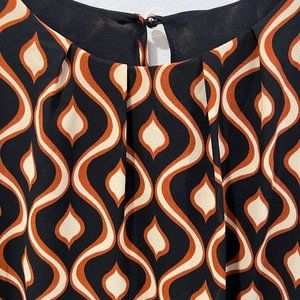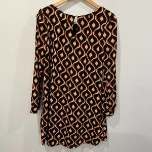 Moda Italia Black Brown Retro Long Sleeve Shift Dress Size S