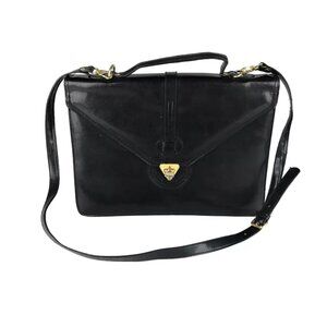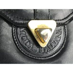 Moda Italiana Unisex Black Leather Inner Dividers Detachable Strap Shoulder Bag