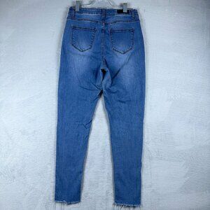 Moda Jeans High Rise Skinny Denim Stretch Frayed Hem Ankle Womans Blue Size 13