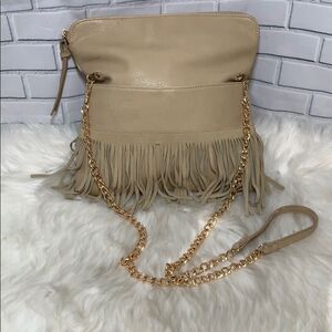 Moda Luxe Leather Fringe Foldover Crossbody Bag