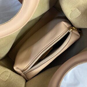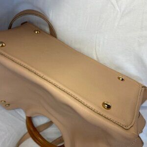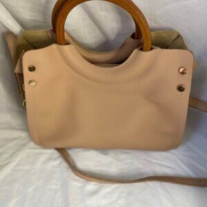 Moda Luxe Maya Satchel in Tan with Wood Handles and crossbody strap
