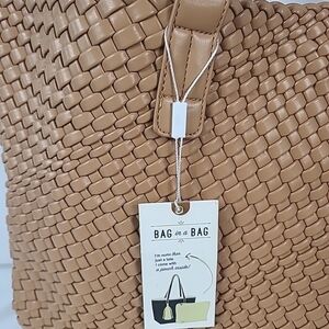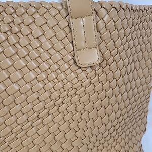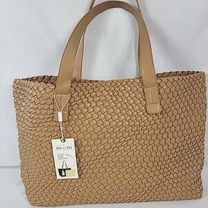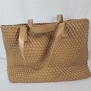 Moda Luxe Piquant Woven Hobo Shoulder Tote Luxury Handbag Vegan Leather Tan $140 Retail. 20' x 5" x 12"