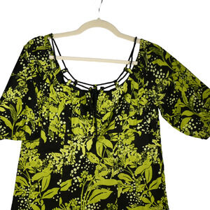Moda Mini Dress Womens Small Green Black Floral Rope Detail Pleats Lace Boho