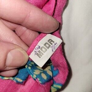 Moda, pink fabric with butterflies in blue, yellow, and black, polyester, size is 68 inches by 36 inches