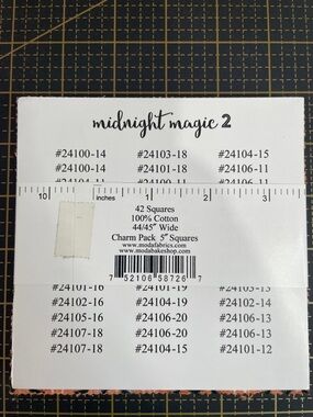 NEW Moda Precut Bundle. Listing is for Three charm packs of Midnight Magic 2 by April Rosenthal of Prairie Grass Patterns. One mini charm pack Little Ducklings by Paper & Cloth. One mini charm pack Frisky by Brigitte Heitland for Zen Chic. One mini charm pack Song Book by Fancy That Design House.