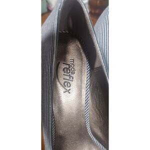 Moda Reflex Cork Wedge Peep Toe Shoes, Navy & White, Size 8.5