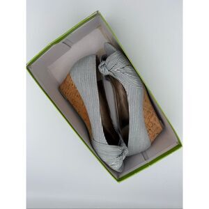 Moda Reflex Womens Navy White Stripe Cork Wedge Peep Toe Shoes Size 9.5