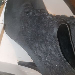 Ladies Bootie in greast condition. With box but broken. Satin upper with lace overlay. Almond toe 4" heel with light padding