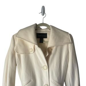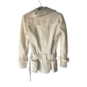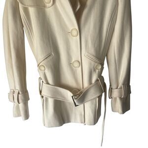 Moda Size Small Wool Blend Cream Button Belted Pea Coat Old Money