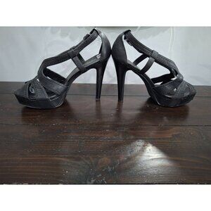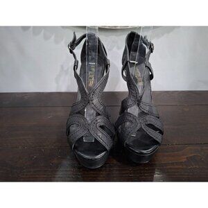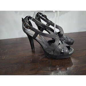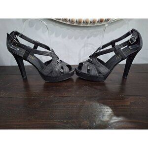Moda Spana Black Leather Strappy Peep Toe Heels/Pre-owned, Sz. 9M