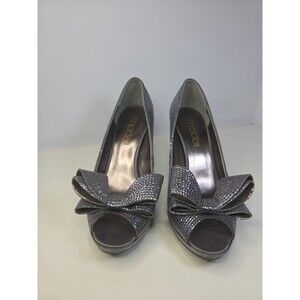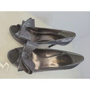 Moda Spana Cinderella Silver Rainbow Crystal Sparkle Bow Leather Pumps Sz 8.5 M