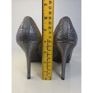 The Moda Spana Cinderella Silver Rainbow Crystal Sparkle Bow Leather Pumps in size 8.5M are a glamorous and stylish choice for women. These slip-on pumps feature a stiletto heel and a beautiful silver color with a sparkling rainbow crystal bow accent, adding a touch of glamour. Made of leather, these pumps are perfect for those looking to make a statement with their footwear, whether for a special occasion or to add a touch of sparkle to a night out.