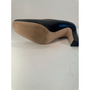 The Moda Spana KERRY Black Kid is a stylish women's dress shoe known for its elegant design and comfortable fit. This particular pair is in size 10W, offering a wider fit for added comfort. Made from a smooth black synthetic material ("Kid" refers to the soft finish), the shoes feature a modest heel suitable for both work and formal occasions. They were originally sold at Nordstrom for $60 and reflect the retailer’s quality standards. These shoes are very gently worn, showing minimal signs of use and retaining much of their original condition.