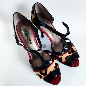 Moda Spana Leopard Strappy 4" Heels Open Toe Women's Size 7.5 T-Strap Mary Janes