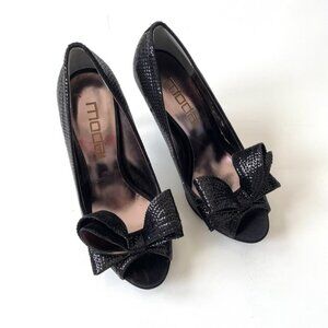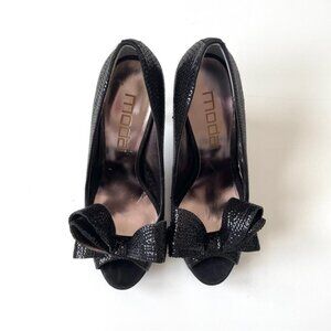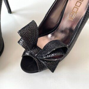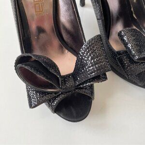 Moda Spana Sequin Peep Toe Stiletto Heels with Bow, Black Size 6