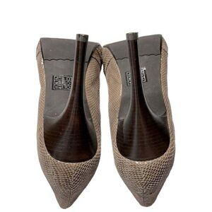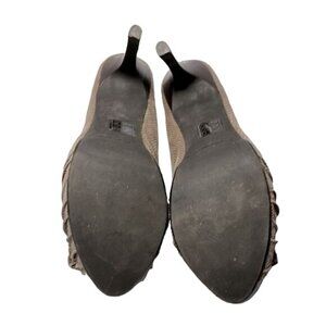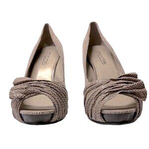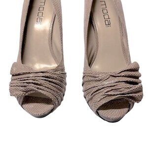 Moda Spana Snakeskin Heels Texture Gathered Fabric Top Peep Toe Rubber Size 9.5