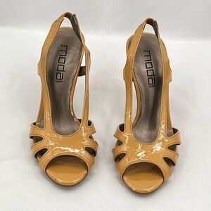 Moda Spana Mustardy Golden Tan Patent Slingback Open Toe Heeled Sandals Size 7