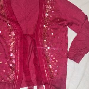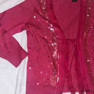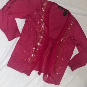 Moda Vintage Cashmere Silk Barbie Pink Sequin Sparkle Cardigan Sweater XS