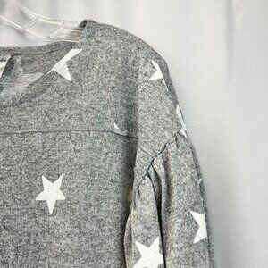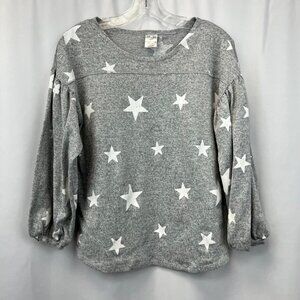 Moda Womens Gray White Star Print Long Sleeves Pullover Sweatshirt Size Medium