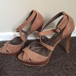 Moda crisscross peep toe tan heel