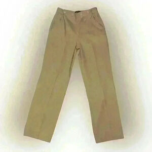 Very cute and sophisticated Moda Brand Khaki pants. Unique bottom placement and wide legged. 100% Cotton.