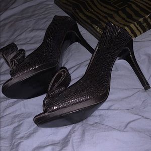 Beautiful black studded 3 inch peep toe platform dress heels. Gentle used and smoke free. Wore once.