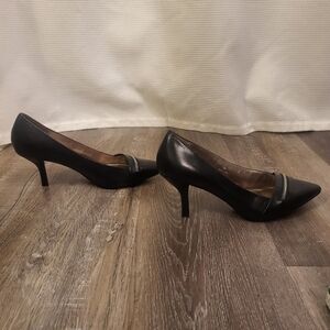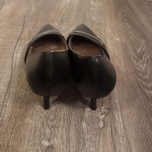 Very stylish classy moda black heels with zipper embellishment on the top 3 inch heel excellent condition