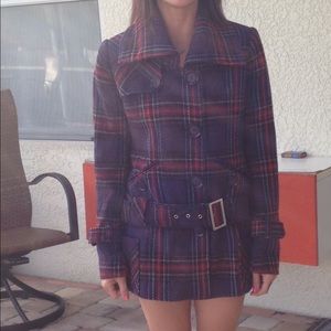 Only worn a few times. Zero sign of wear. Gorgeous purple plaid color. Bought at Victoria Secret. Not exactly. Pea coat but close enough. The brand is Moda but I bought at Victoria's Secret