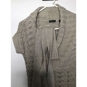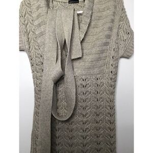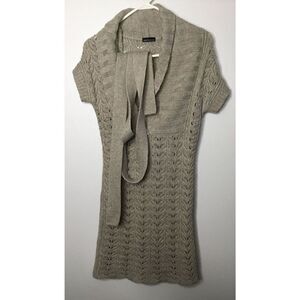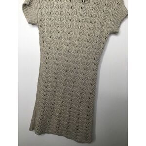 Moda Int Knit Dress XS Wool Short Sleeve Sweater Dress Beige Sand Belted V-neck