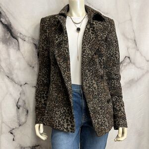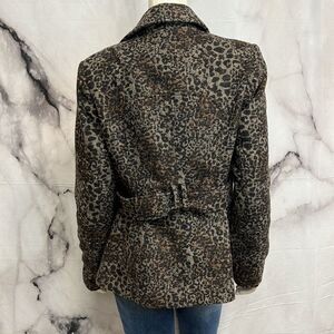 Moa international brown black gray animal print double breasted jacket excellent condition no damage Bust measures 20 inches across shoulder to bottom 27 inches