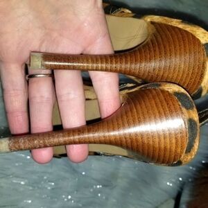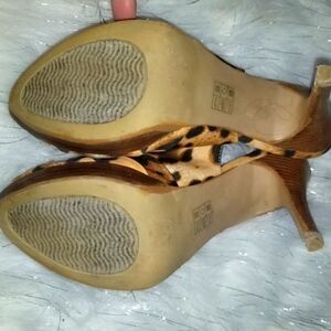 Sling back. Peep toe. Size 7.5. 4.5" heel. Great leopard print.