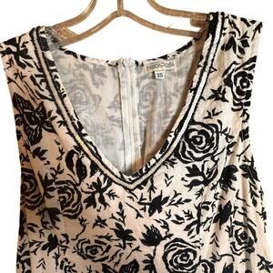 ModaPosa Womens XS Black White Floral Sleeveless Swing Dress Lace Up Back Lined