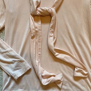 Light pink long sleeve knit shirt with front tie
