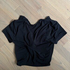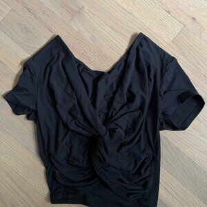 Modal-Silk Twist-Front Cropped T-Shirt Black Size M