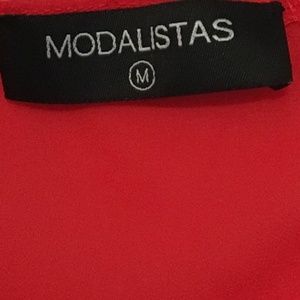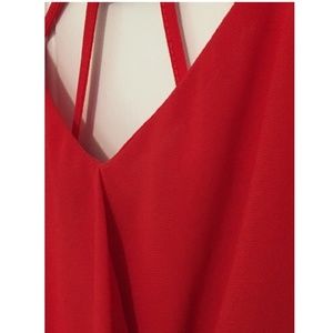Bright poppy red, this little cami is perfect for a summer evening! VERY gently worn, in excellent condition. Features a double lined wrap front with funky racer back straps in the back. Can be tucked in to high waisted jeans.