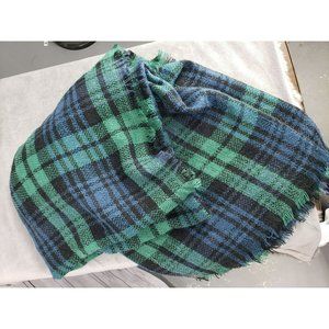 ModCloth Green Blue Plaid tartan oversized Blanket Scarf 55x 55 100% Acrylic