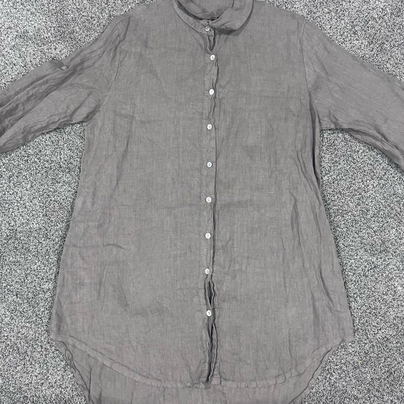 Modamalfi Made In Italy 100% Linen Button Front Shirt Dress Taupe Grey M/L