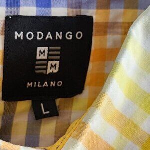 Modango Yellow Gingham Plaid 100% Cotton Short Sleeve Shirt