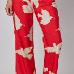 Modaposa Bird Print poly chiffon Wrap Top & Wide Leg Pants Set elastic waist
