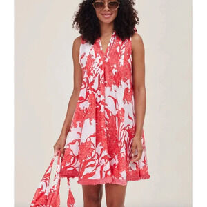 Modaposa Felice Pintuck Sleeveless Cotton Dress in Red Coral Size Large