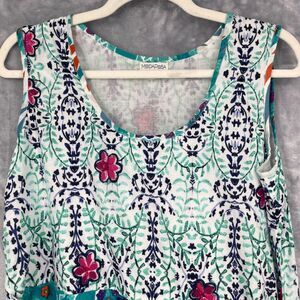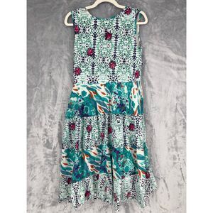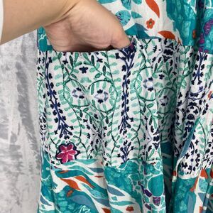 Modaposa Sun Dress Women Medium Turquoise Floral Print 100% Cotton Lined Pockets