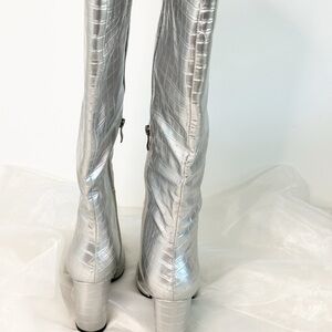 Modatope Women's Knee High Boots Riding Boots Tall Boots Long Boots Calf High Boots GoGo Boots Chunky Faux Crocodile Boots Block Heel Pointed Toe Boots