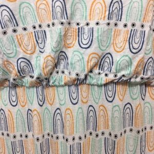Modbe Womens Medium Orange Blue Geometric Print Long Maxi Dress In good used condition. The dress has a Stretch Waist. No stains, tears or rips.