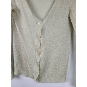 Modbe Womens Button Front Cardigan Small Beige Long Sleeve Ruffle Fairy