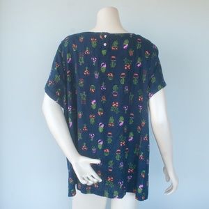 Modcloth 3X Navy Blue Cactus Plant Print Linen Blend Top
