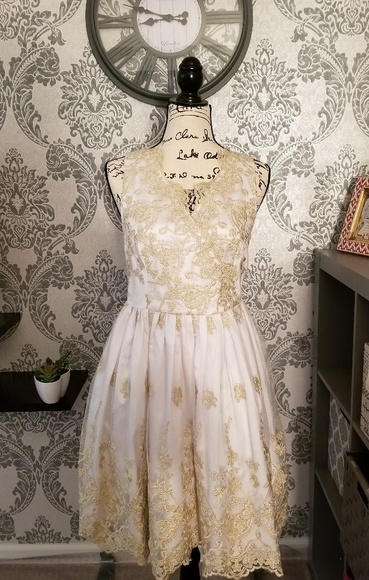 Royal Champagne toast to you dress, runs very small for me. Listed as large but it's a medium, bought from a fellow posher. Reasonable offers will be accepted.