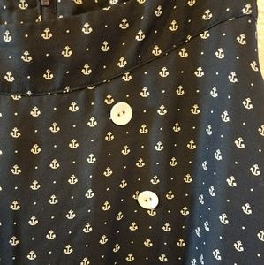 Adorable M Modcloth 3/4 length sailor skirt in navy with white anchor print, buttons, and back zip. Excellent condition!