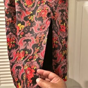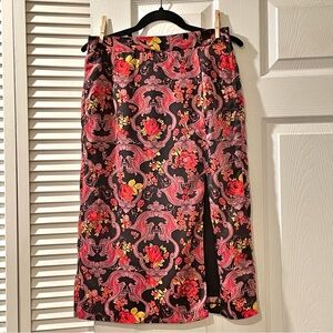 Modcloth Baroque Floral Satin Pencil Skirt M Knee Slit Romantic Dark Academia